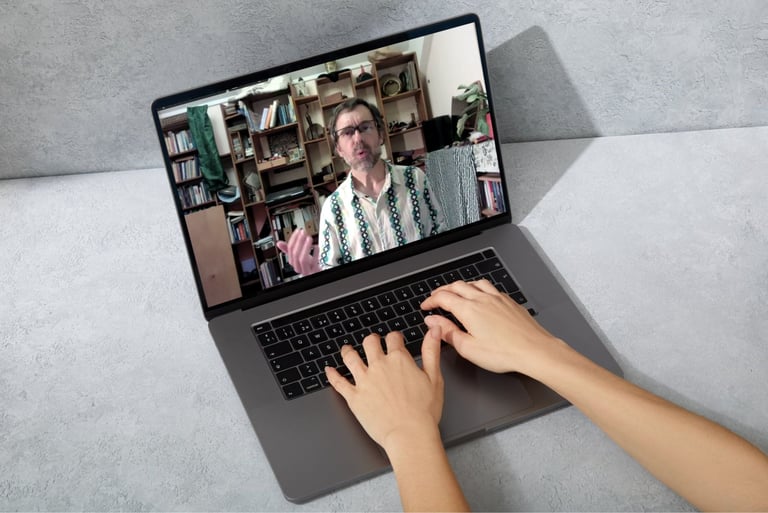 A computer with good WiFi connection or ethernet (internet) cable. Mark uses Jitsi Meet (https://jitsi.org/) for one-on-one classes, for those who care about fair and 100% anonymous communication using the web. There is no need to install an app, a web connection through a browser suffices. You will have the possibility to record the class yourself and keep the file on your computer. For more options send an email.